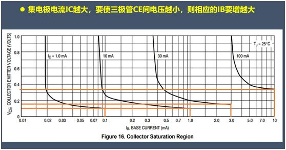 這個(gè)圖說(shuō)明如果B極電流越大,CE電壓差就越小,相應(yīng)的燈的電壓越小。