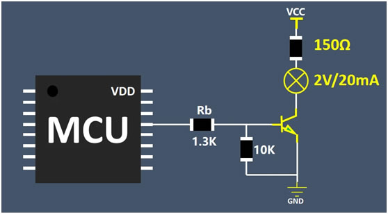 當(dāng)MCU輸出高電平,三極管飽和導(dǎo)通,負(fù)載有電流流過(guò),那么怎么去選取三極管基極的限流電阻RB呢?